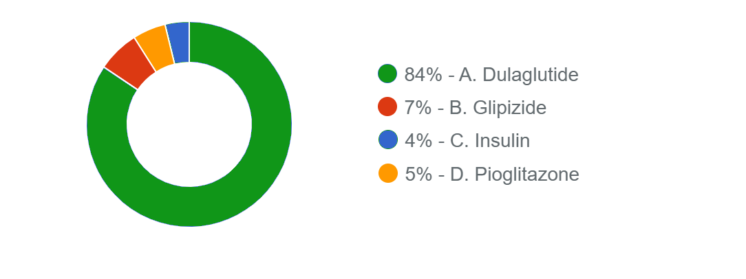 In most patients who need the greater glucose-lowering effect of an injectable medication, GLP-1 RAs are preferred to insulin (Option C). Insulin administration is not associated with the ASCVD benefits of a GLP-1 RA and may also cause weight gain.