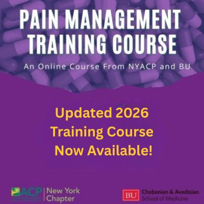If you are due to renew your NYS 3-year opioid-pain training mandate or, if you need to take the 3-hour training for the first time, the NY Chapter ACP is offering a newly updated online CME training program that has already been approved by the NYSDOH.